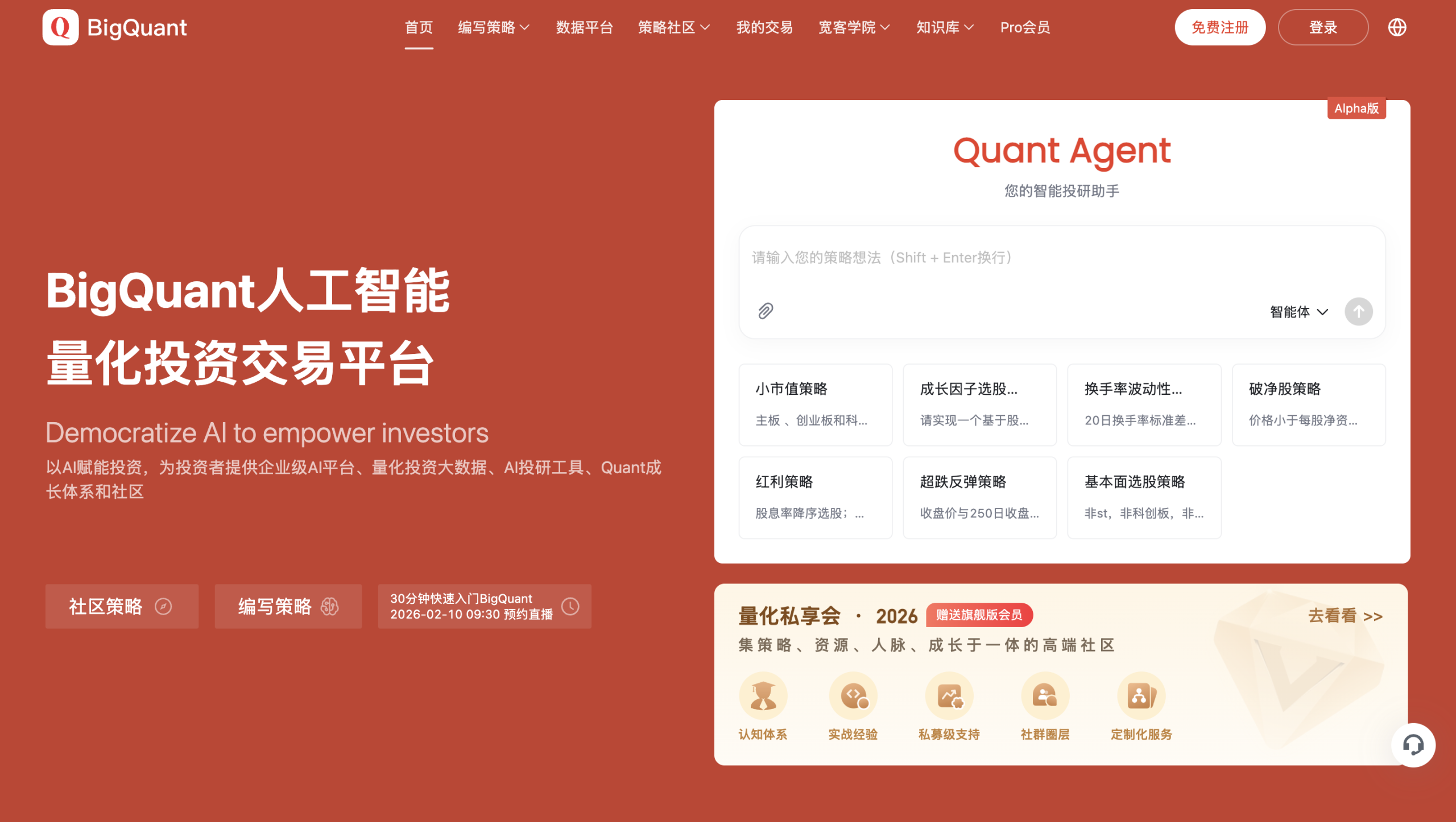 BigQuant is basically a trading bot platform that focuses on AI and data-based strategies. The main goal is to help traders automate their trading without needing deep coding skills. You get access to a range of ready-made trading strategies covering different assets and markets. Plus, if you’re into customizing, you can build your own strategies through their interface.